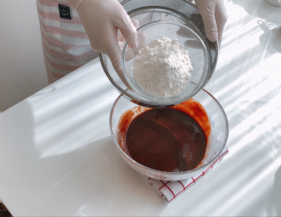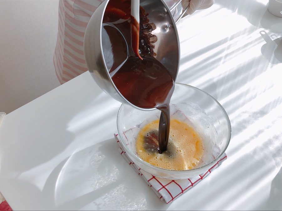 계란 반죽+초코 반죽을 빠르게 섞어주세요.