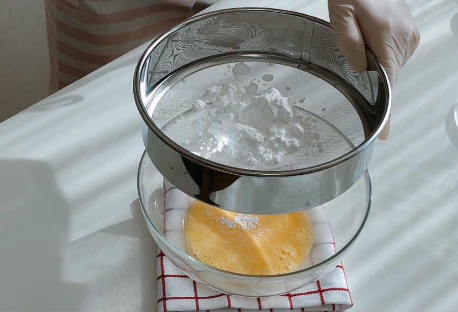 체 친 슈가파우더와 설탕을 휘퍼로 섞어주세요.